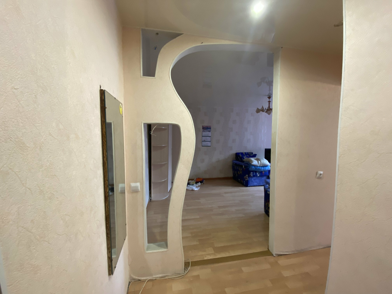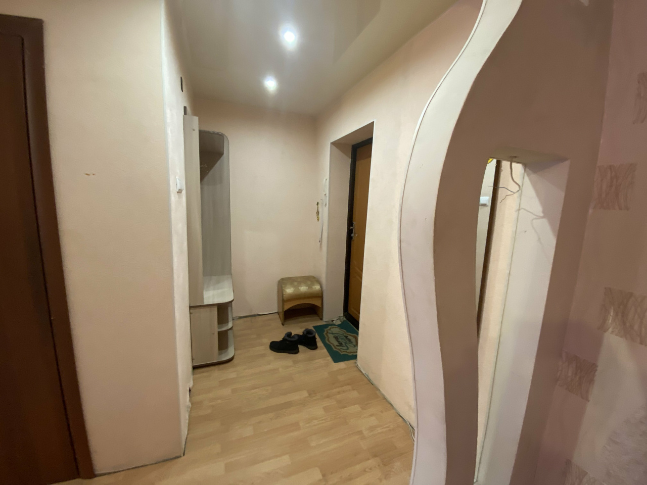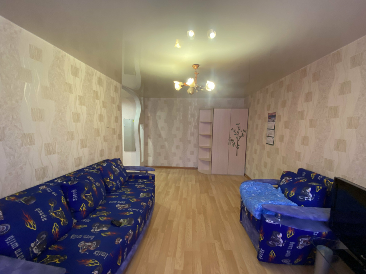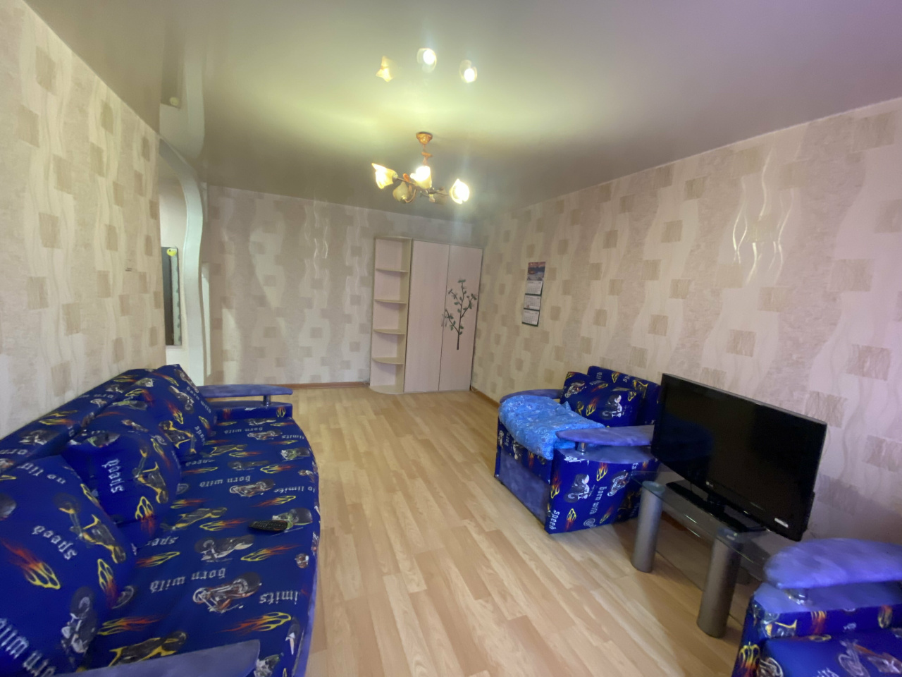 Из мебели в комнате большой шкаф, двухстворчатый, мягкая мебель, диван, 2 кресла, стеклянная тумба под телевизор, TV, компьютерный стол. В прихожей, модульная прихожая «Оскар», вешалка с полками, для обуви и головных уборов. В кухне, стол, холодильник, газовая плита, раскладной стол тумба, навесной шкаф. Санузел совмещенный, в кафеле, пол керамогранит с подогревом. В квартире окна ПВХ, батареи новые, потолок натяжной,на полу ламинат. Балкон. Сейф дверь. Состояние отличное.