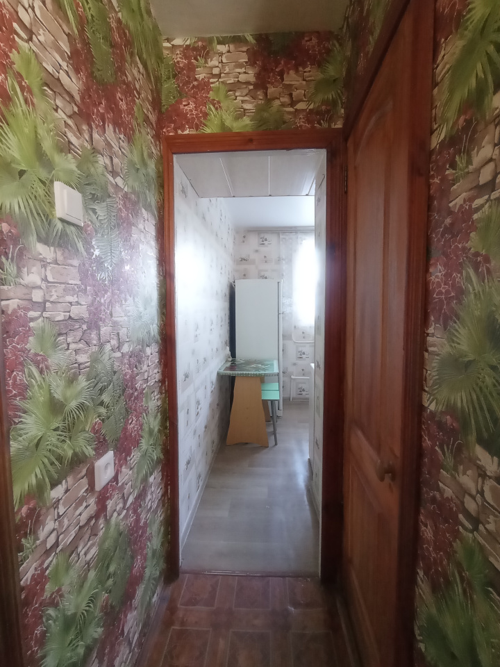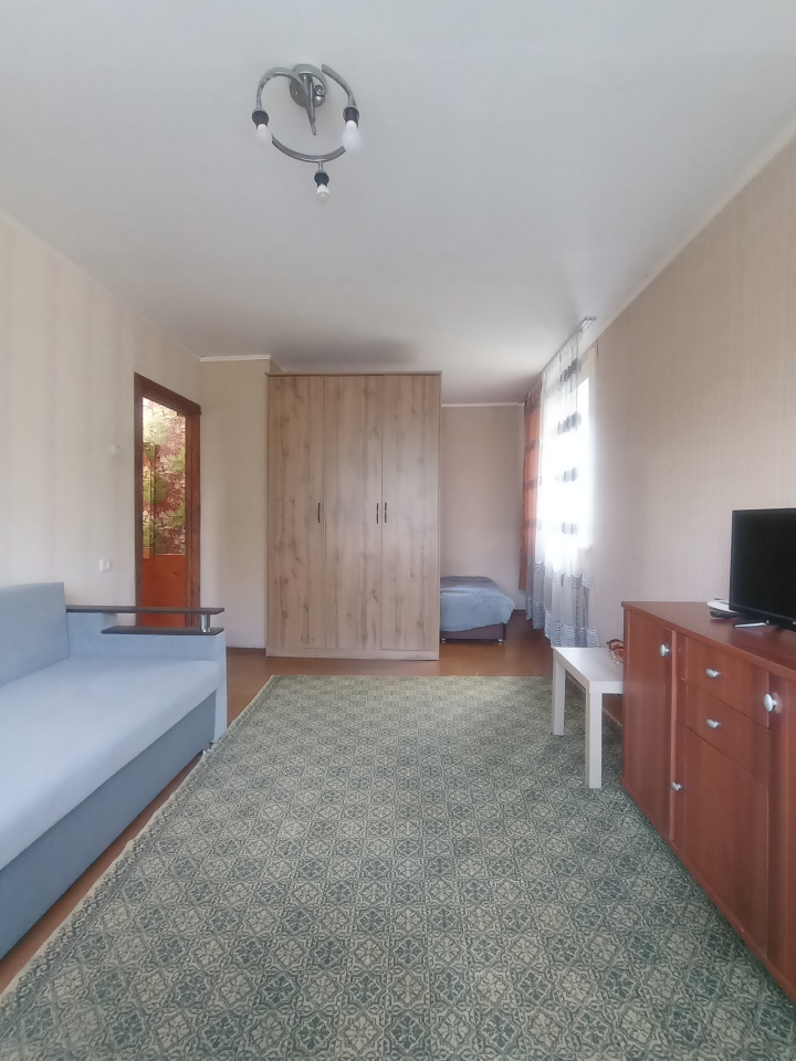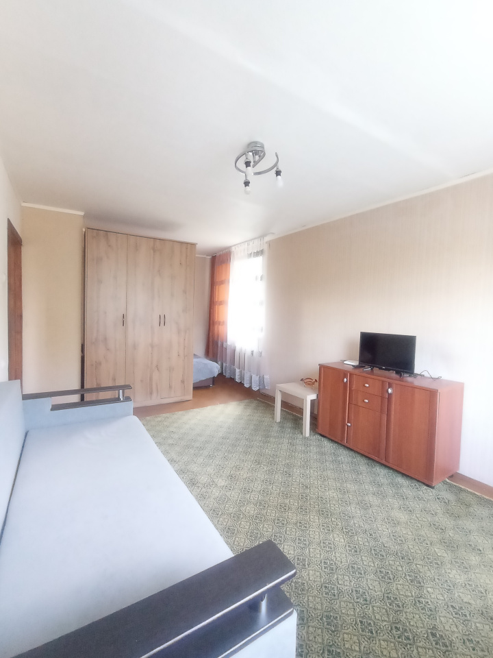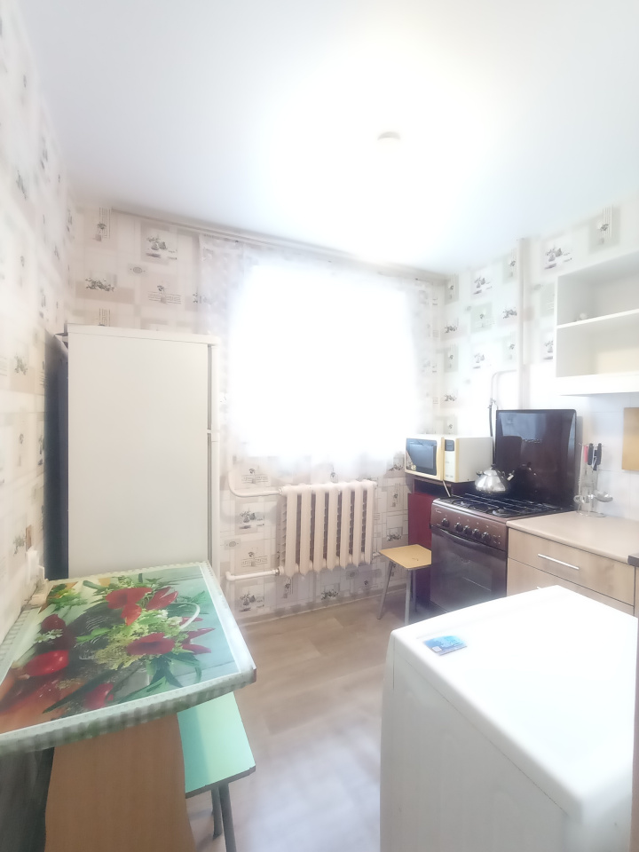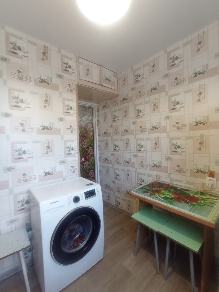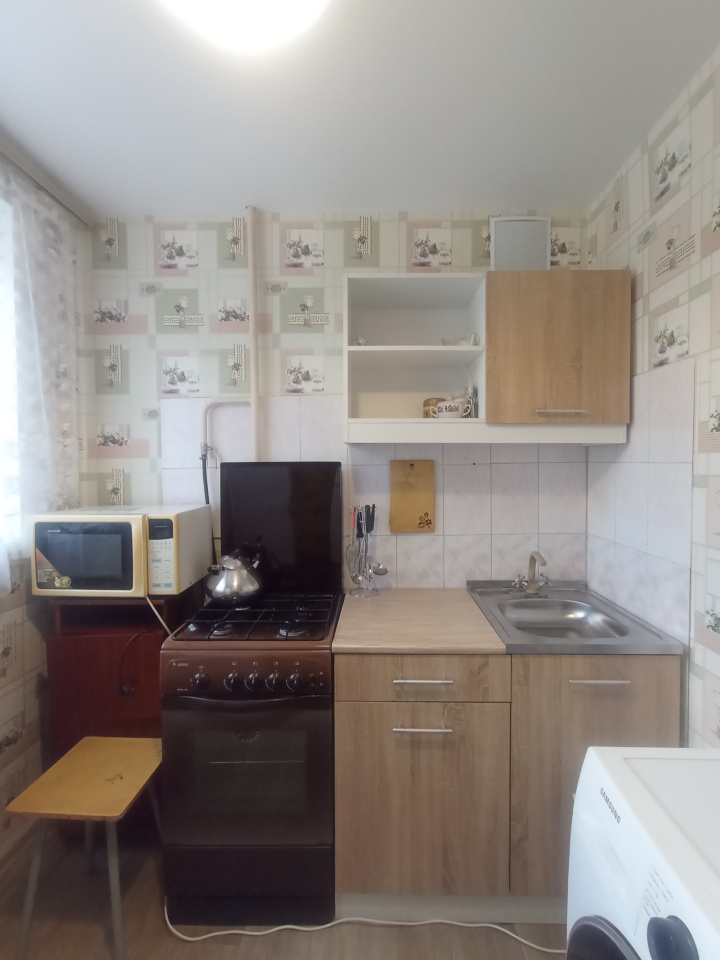 Есть вся необходимая мебель, столы, стулья, диван, холодильник, газовая плита, стиральная машина, телевизор. В комнате удобно отделен закуток с кроватью и своим окном. Окна пластиковые, входная дверь металлическая, на кухне натяжной потолок.