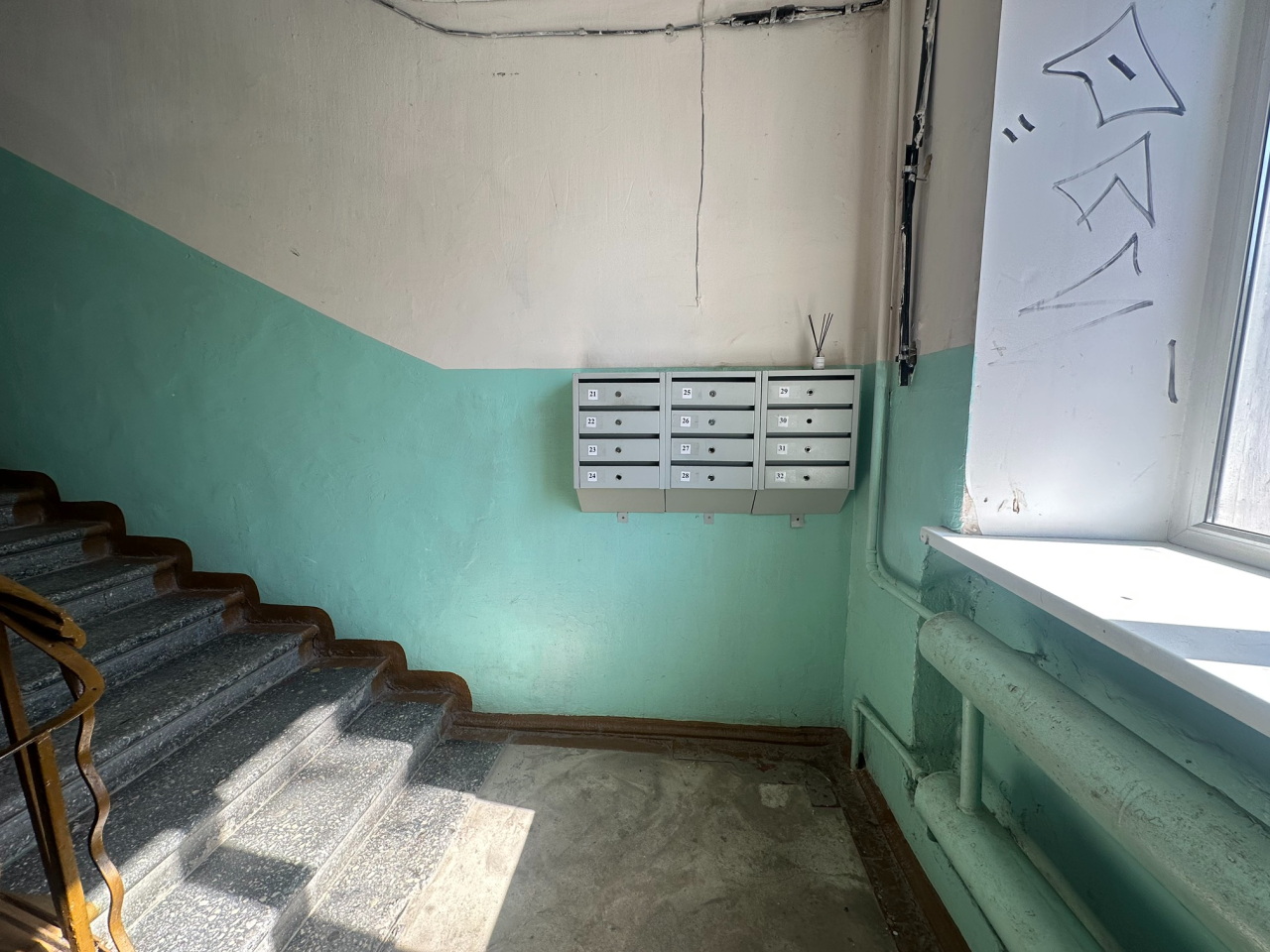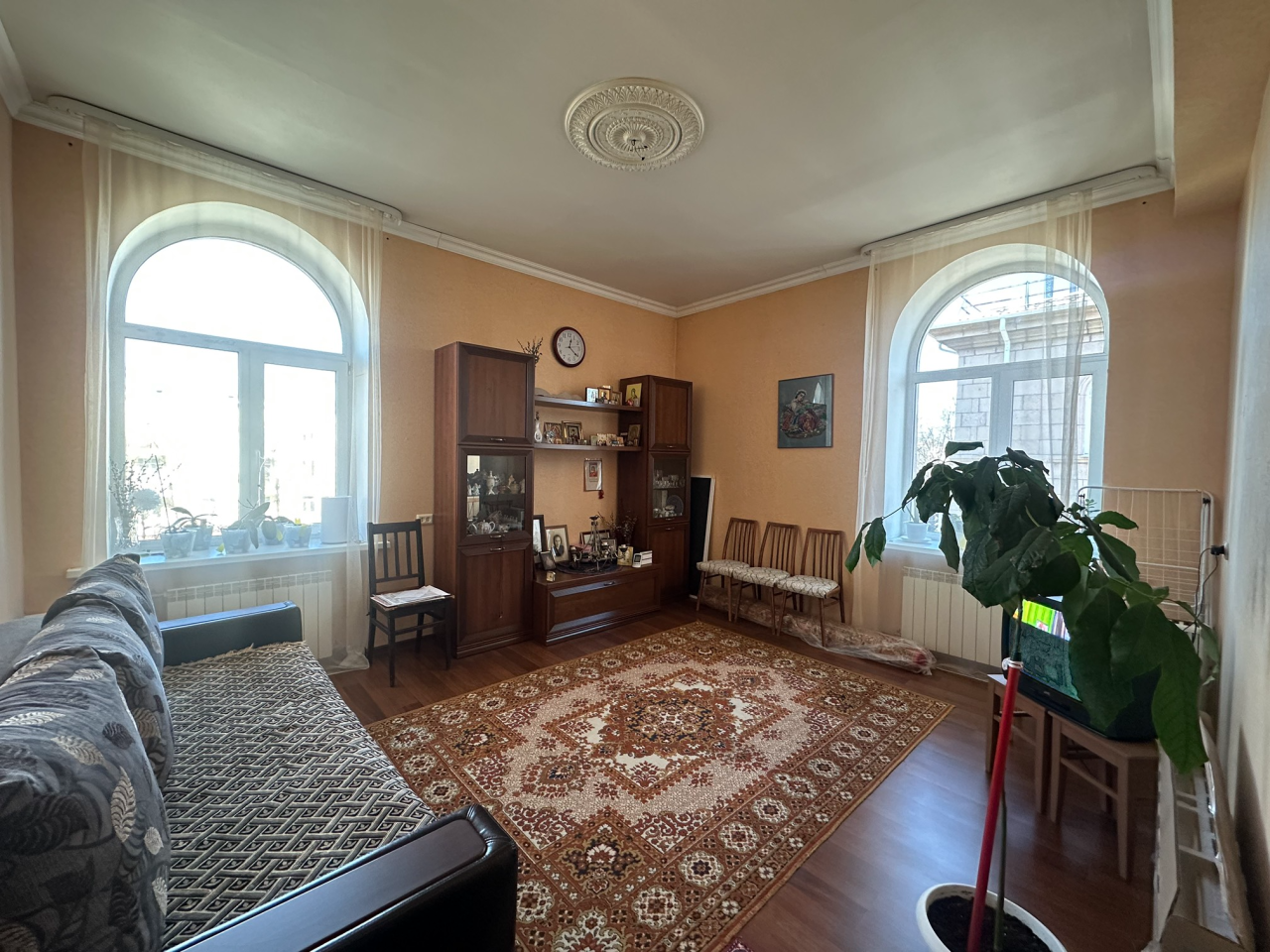 ? **Окна: ** большие, высокие, дающие много света в квартиру пластиковые, выходят во двор и на улицу.